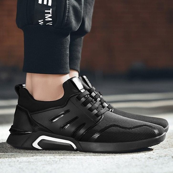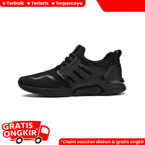 Sepatu Pria Sneakers Running Fashion Casual Shoes Kerja Pria Hitam Polos
