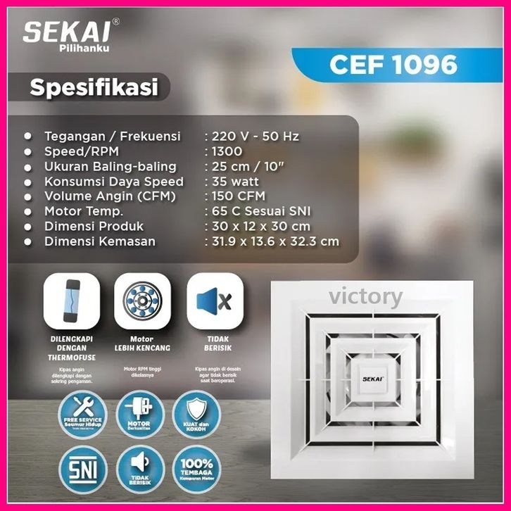 Sekai CEF-1096 Kipas Eksos Plafon Ukuran 10 Inchi