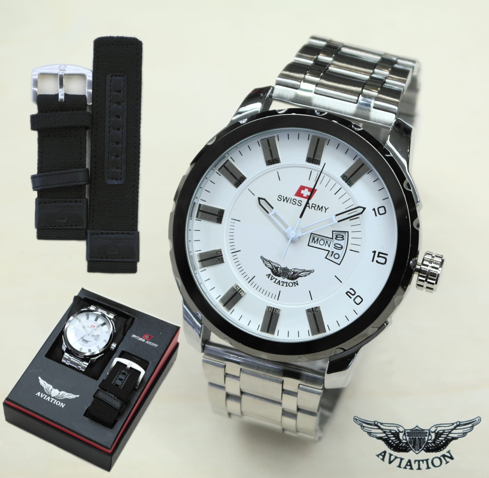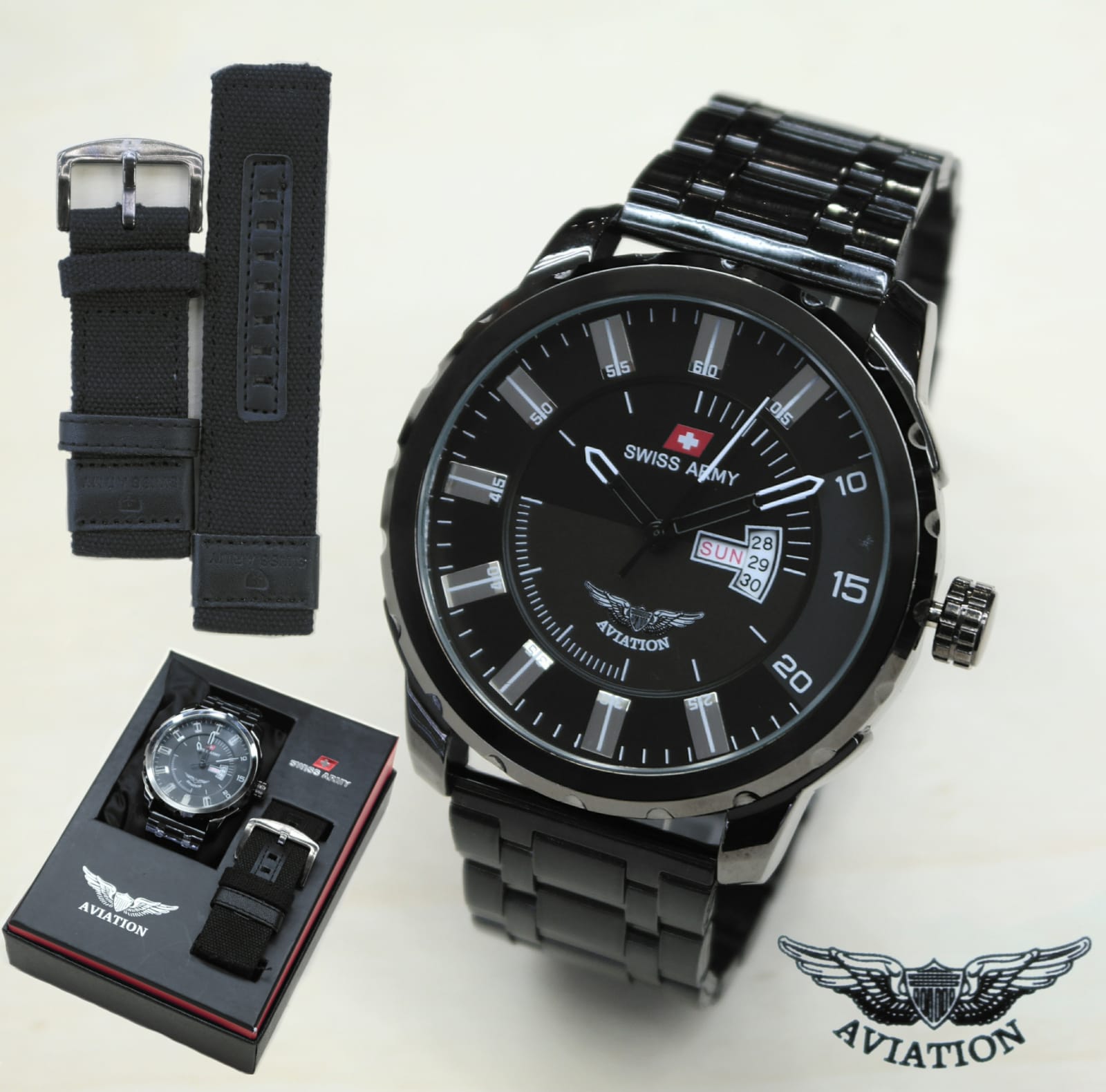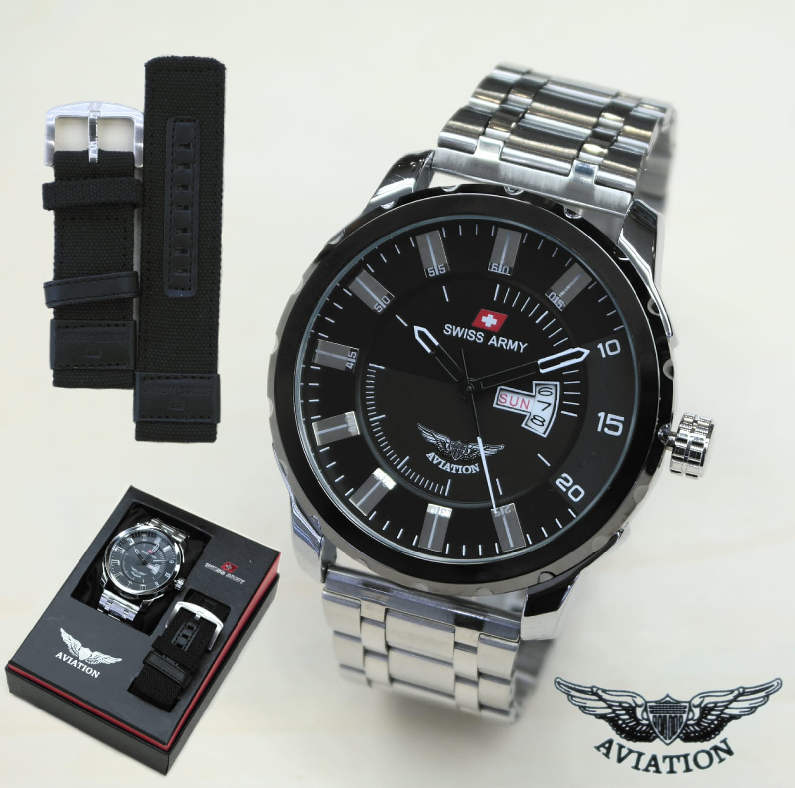 Jam Tangan Pria Swiss Army Aviation Bonus Tali Kanvas Dan Box