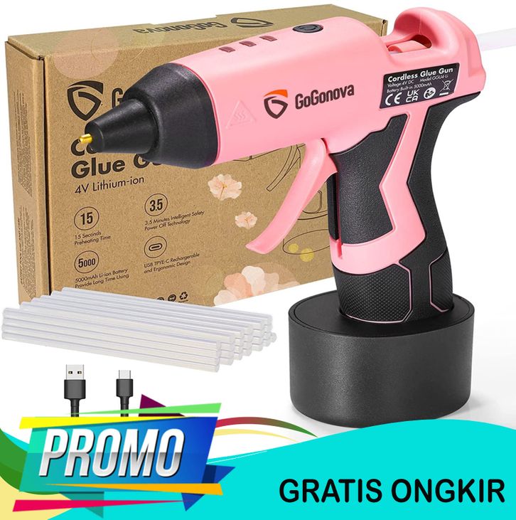 HYDERSON LEM TEMBAK TANPA KABEL USB ISI ULANG GLUE GUN 15S PEMANASAN CEPAT - GRATIS 25 PCS 7MM LEM TONGKAT
