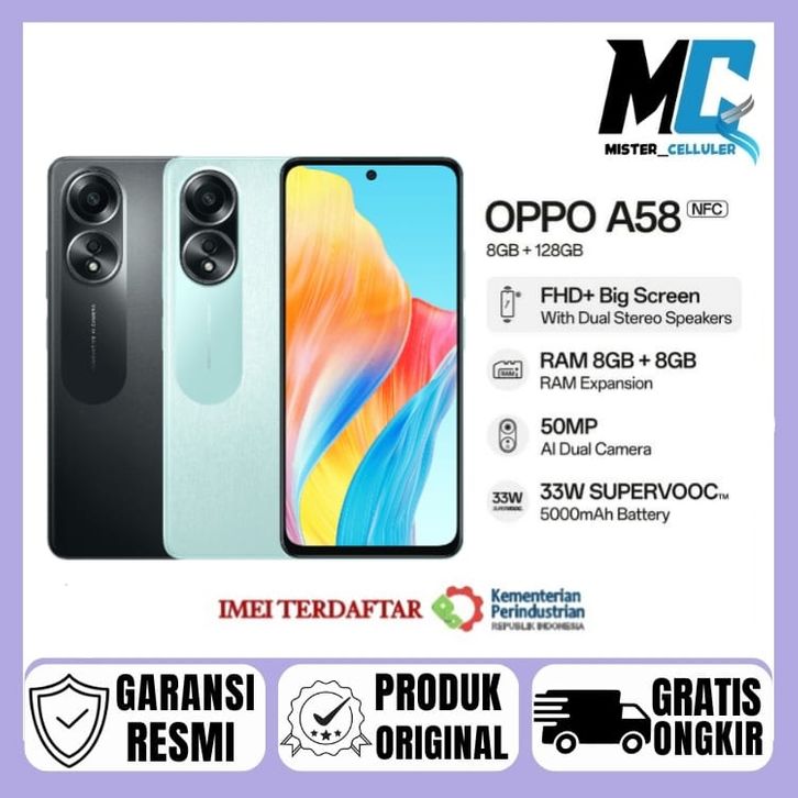 HP OPPO A58 RAM 8/128GB ORIGINAL RESMI INDONESIA | OPPO A57 OPPO A5 PRO OPPO A5X OPPO A3 PRO OPPO A3 OPPO A60 OPPO A6X