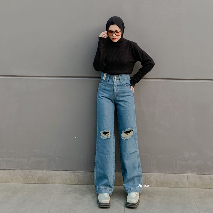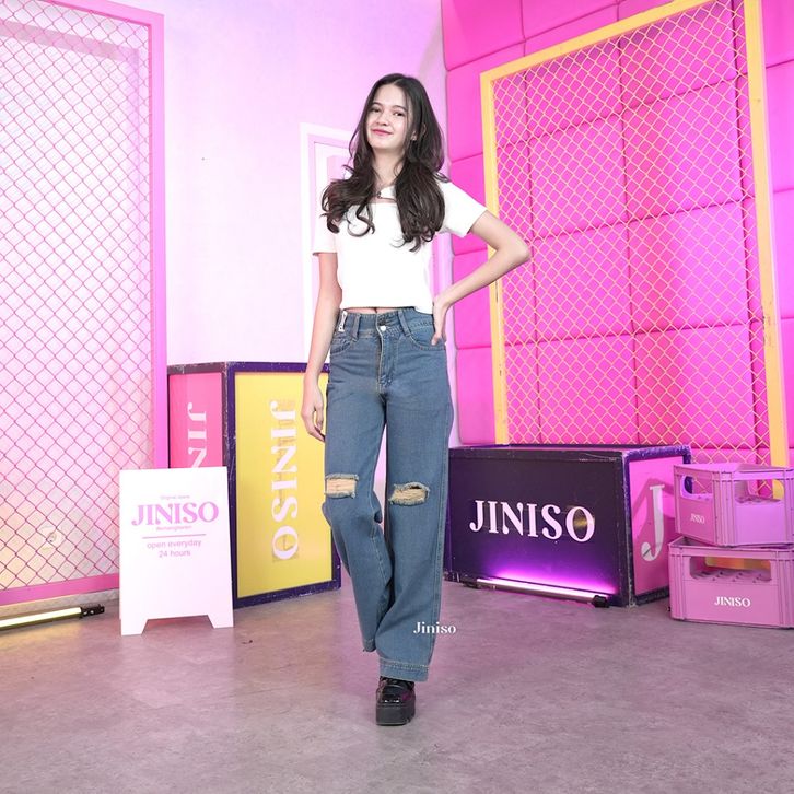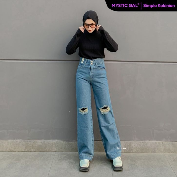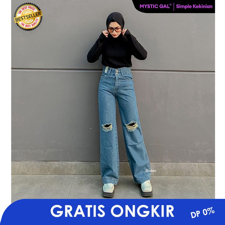 Celana Jeans Wanita Sobek JINISO 505-515 MYSTIC GAL Baggy Ripped Jeans High Waist Celana Jeans Wanita Jumbo