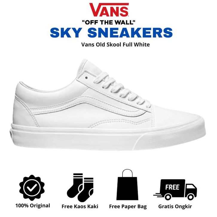 [Mall] SEPATU PRIA WANITA SNEAKER VANS OLD SKOOL FULL WHITE SEPATU ORIGINAL BERKUALITAS