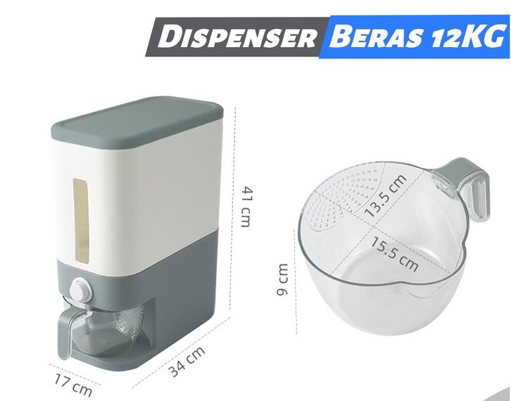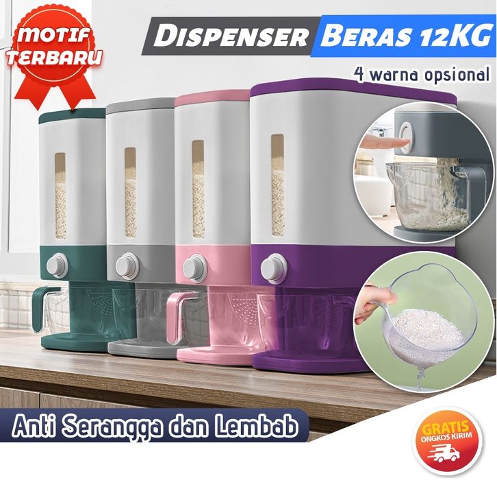 (BEBAS ONGKIR) Dispenser Beras Kapasitas 12 LITER FREE Wadah Pengering Beras / Tempat Penyimpanan Beras Rice Dispenser