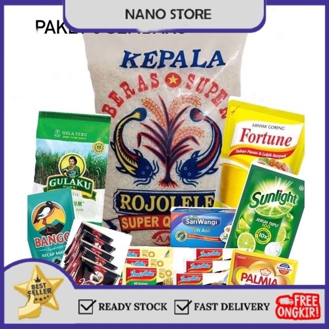 PAKET 8 PAKET SEMBAKO SUPER MURAH Beras 5 kg,Minyak,Gula,Indomie,Sunlight,DLL