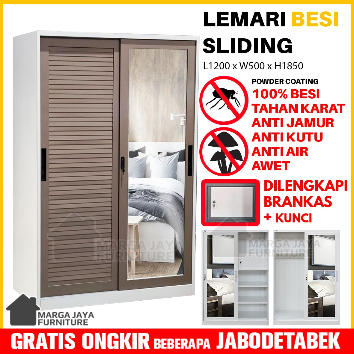 Lemari Pakaian Sliding 2 Pintu BESI JUMBO Marmer Wardrobe Baju Murah Anti Jamur Kutu Banjir