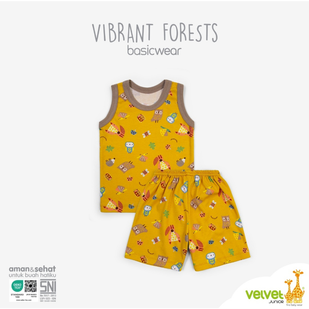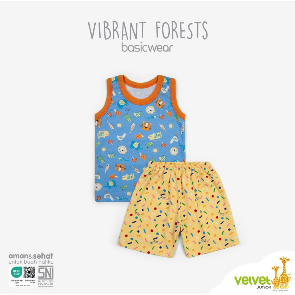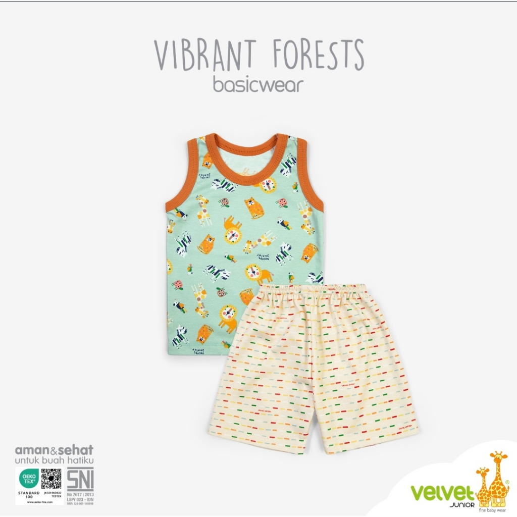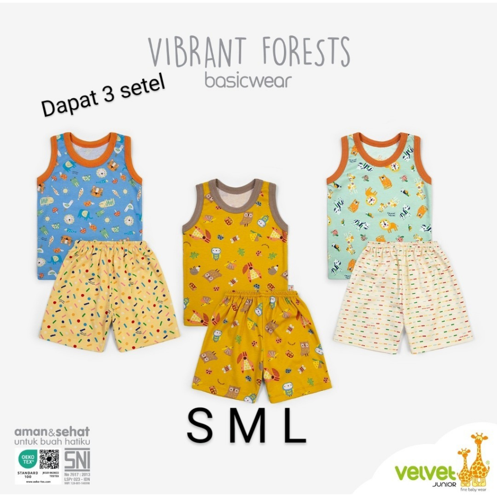 ISI 3 SETEL - STELAN OBLONG SINGLET & CELANA PENDEK SML VIBRANT FORESTS VELVET JUNIOR PAKAIAN BAYI