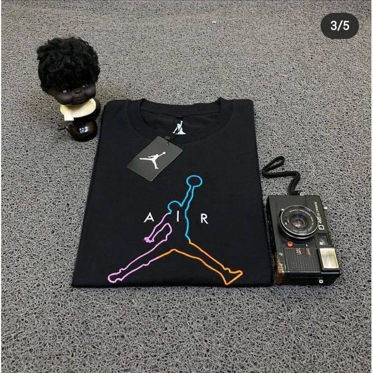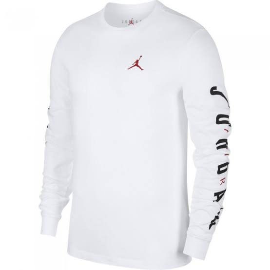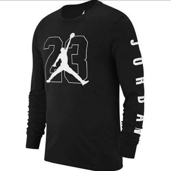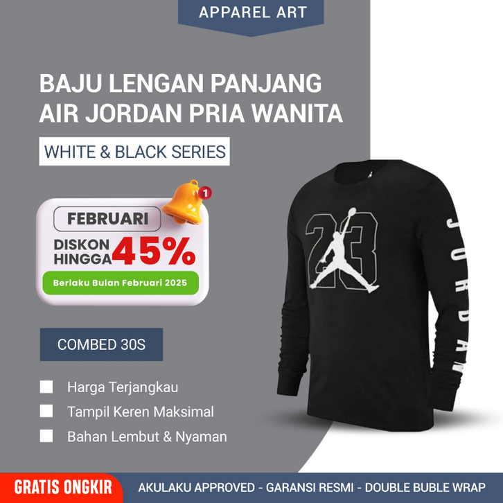 Kaos Baju Lengan Panjang Air Jordan Putih Dan Hitam Series Cowok Wanita Bahan Combed 30s Pakaian Atasan Kekinian