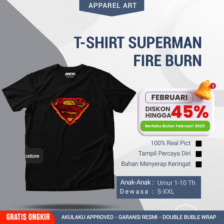 Kaos Superman Fire Burn Api Fashion Baju Pria Wanita Kekinian Terbaru Tumblr Tee Distro 30+ Warna Katun Combed 30S