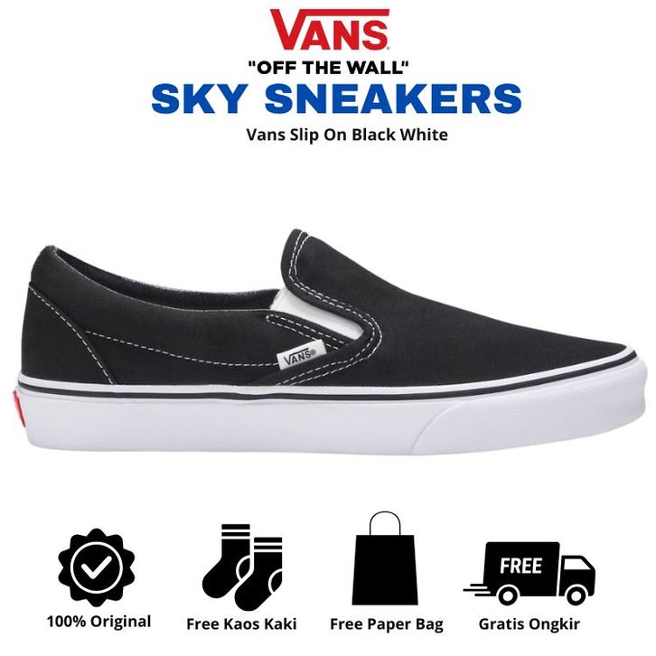 [Mall] SEPATU PRIA WANITA SNEAKER VANS SLIP ON BLACK WHITE CLASSIC 100% ORIGINAL BERKUALITAS