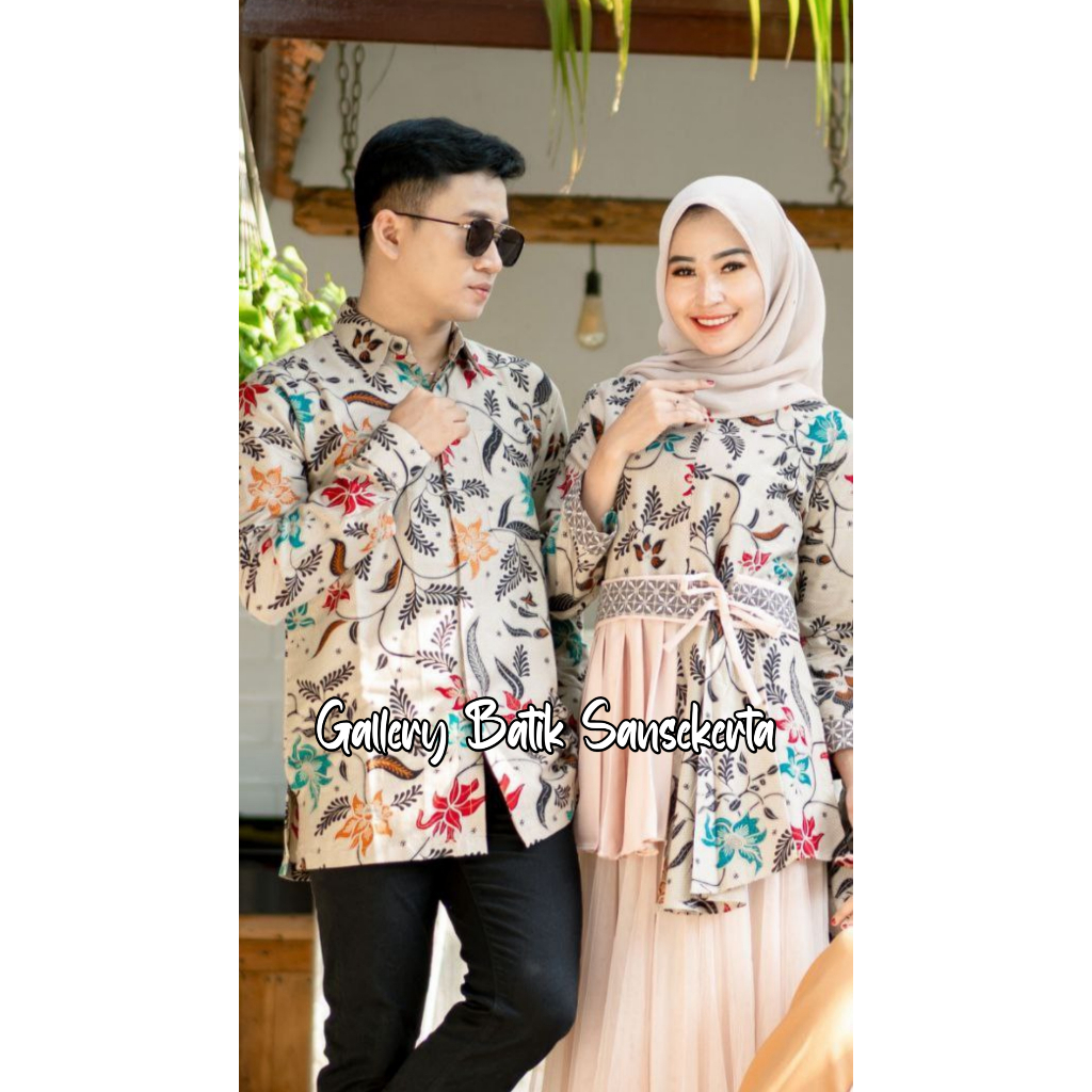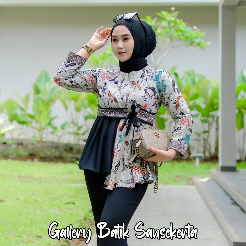 BAJU BATIK WANITA MODERN LENGAN 7/8 ATASAN BLOUSE KEKINIAN SERAGAM KERJA KANTOR RISLETING DEPAN