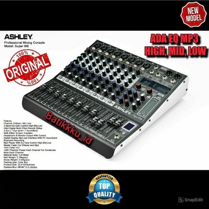 [Star] MIXER ASHLEY SUPER M8 COMPRESSOR / MIXER AUDIO 8 CHANNEL ORIGINAL / MIXER ASHLEY BLUETOOTH / USB CONNECT TO PC