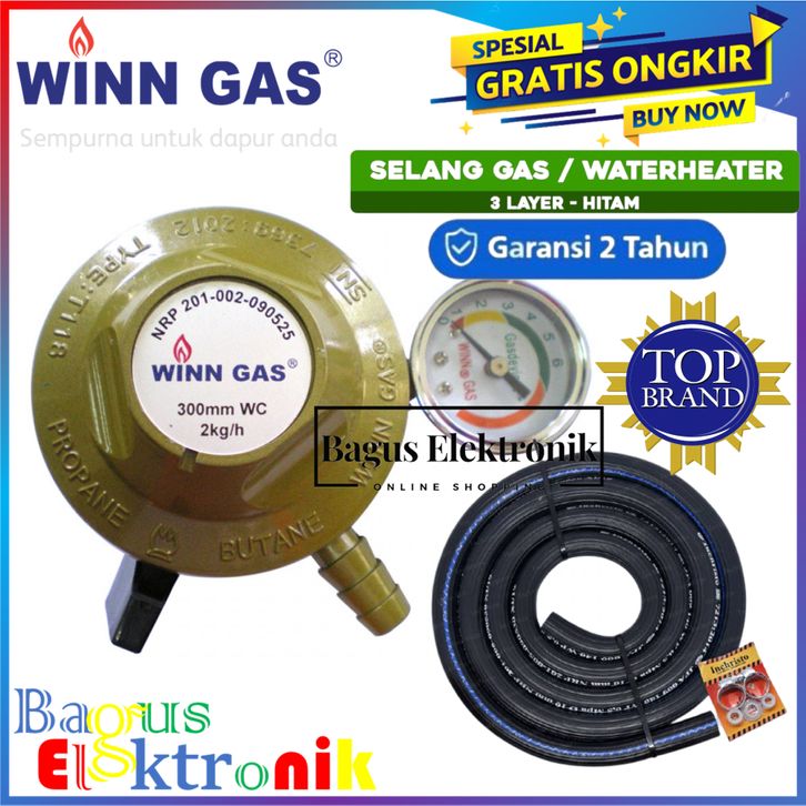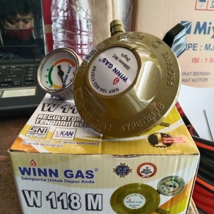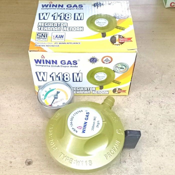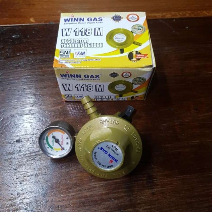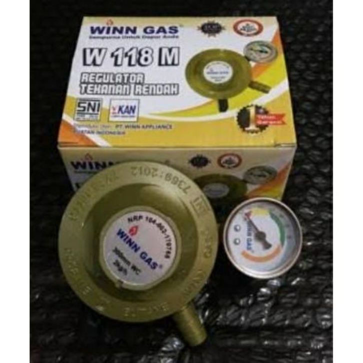 Winn Gas W118M +Selang Gas Hitam 2 Meter+ 2 Klem Regulator Tekanan Rendah SNI Regulator Gas LPG Tekanan Rendah + Meteran