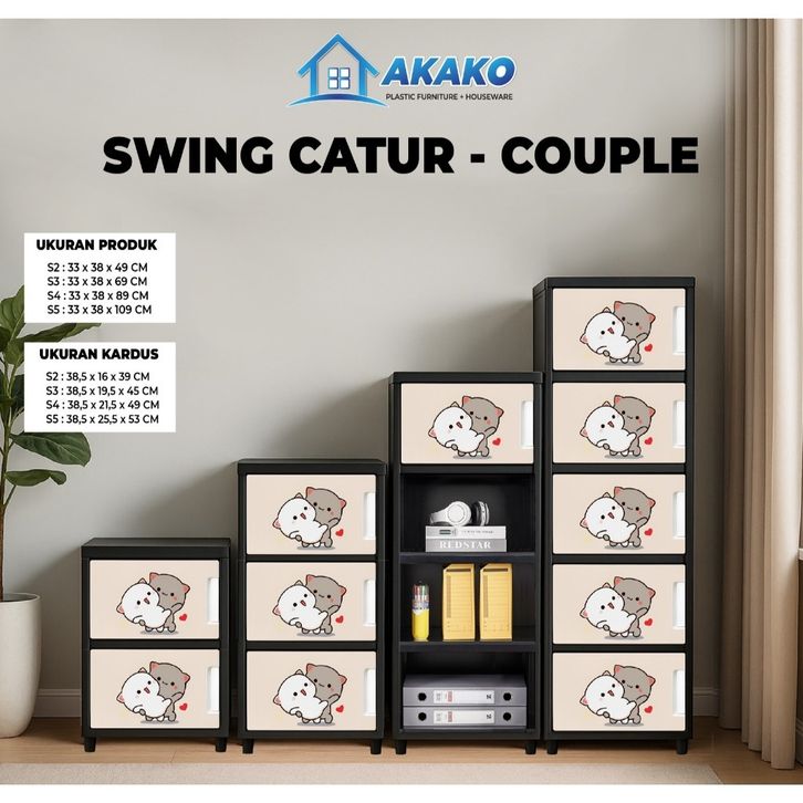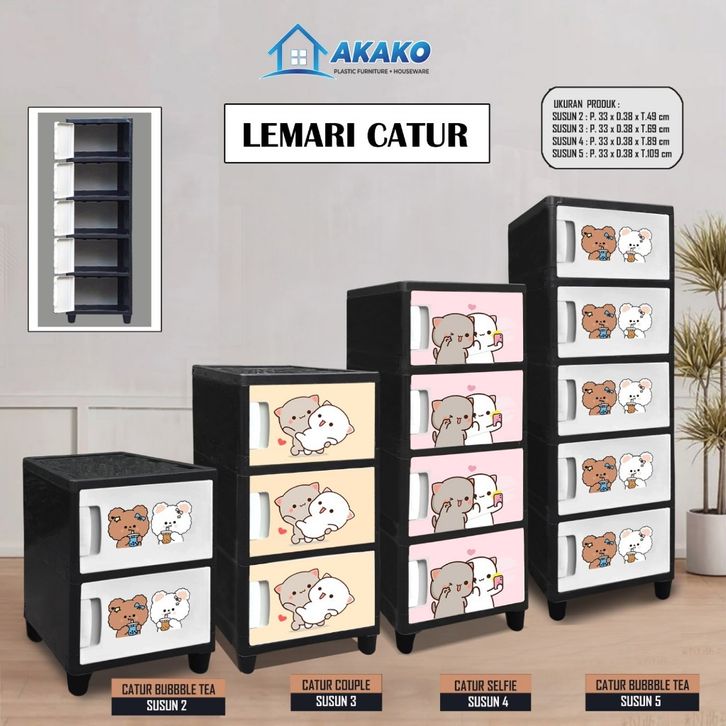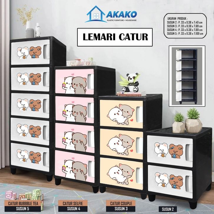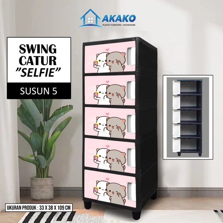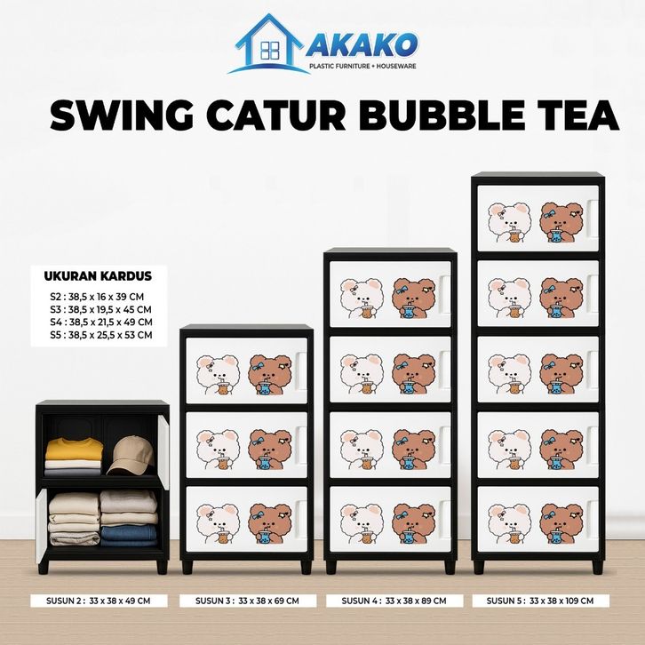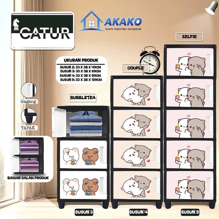 AKAKO - LEMARI PAKAIAN PLASTIK SWING CATUR BERMOTIF PRINTING SUSUN 2 3 4 DAN 5
