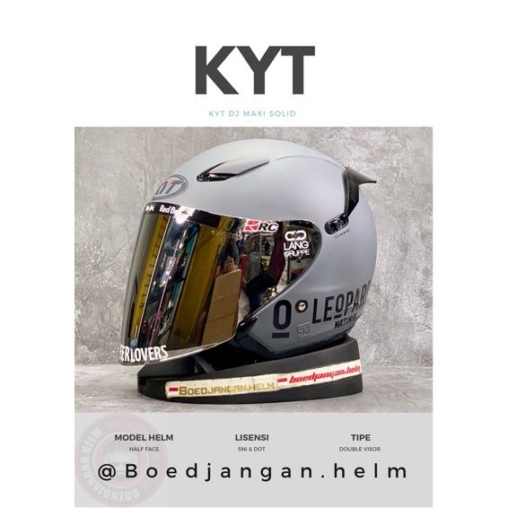 KYT HELM DJ MAXI SOLID GORILLA GREY DOFF- HALF FACE - DOUBLE VISOR - FULL PAKET GANTENG