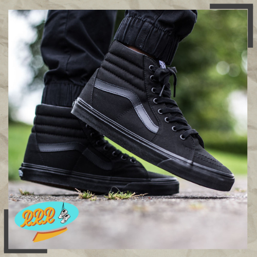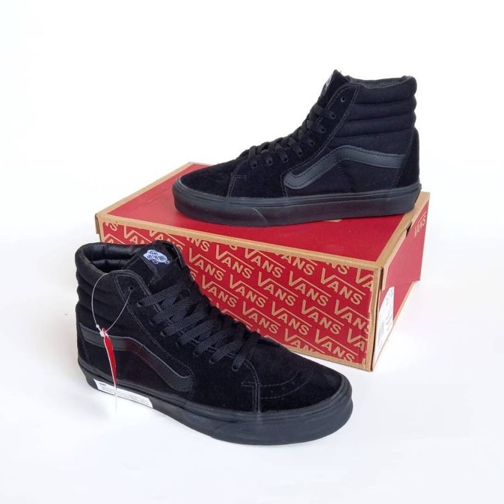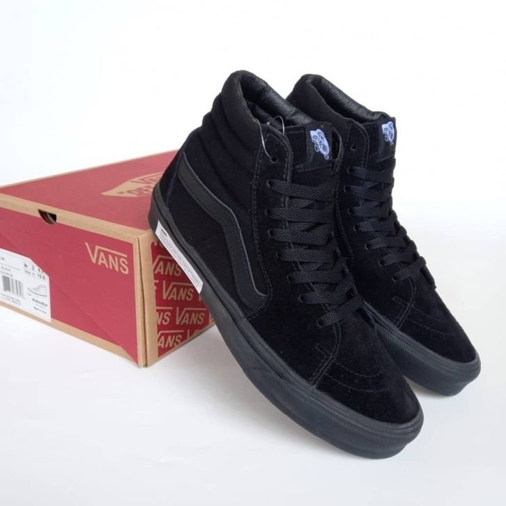 (Gratis Ongkir) Sepatu Pria VANS SK8 HI ALL BLACK CLASSIC ORIGINAL PREMIUM