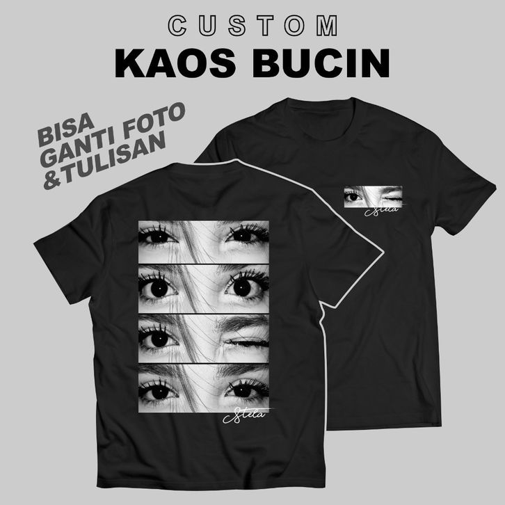 Kaos Bucin Custom Foto Mata Pacar Bisa Ganti Foto/Tulisan/Nama Unisex Pria Wanita Premium Cotton Combed 24S