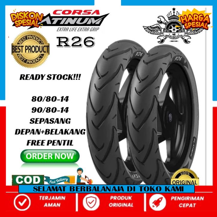 GROSIR/CICILAN PAKET BAN TUBELESS CORSA PLATINUM R26 80/80 14 & 90/80 14 FREE PENTIL