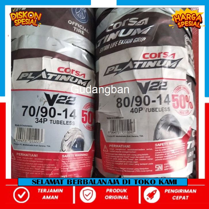 GROSIR/CICILAN PAKET BAN CORSA PLATINUM V22 UK 70 90 -14 DAN 80 90 -14 TUBELESS AWET