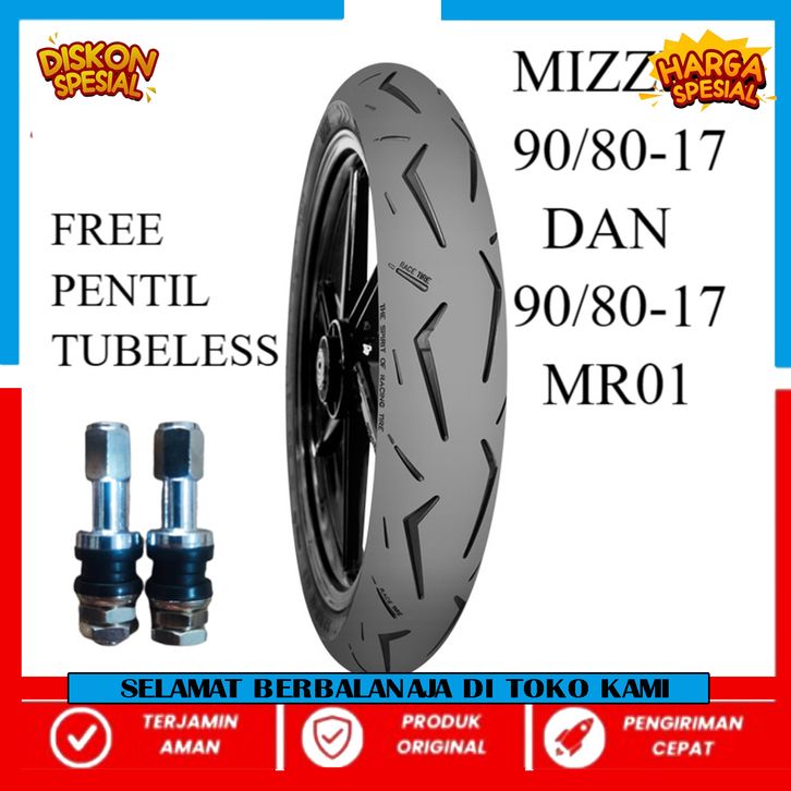 GROSIR/CICILAN PAKET BAN MIZZLE TUBELESS 90/80-17 DAN 90/80-17 MR01 MR 01 (2PCS) (FREE PENTIL)
