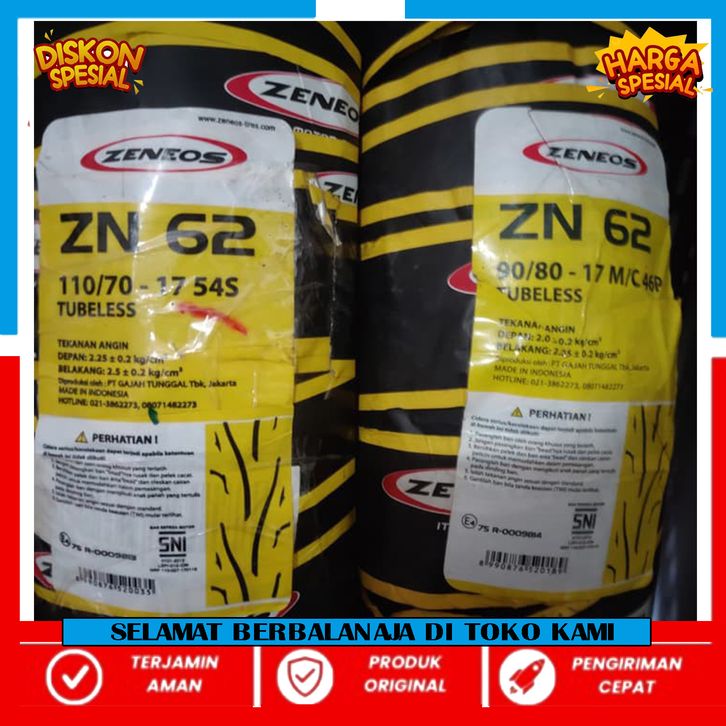 GROSIR/CICILAN PAKET BAN ZENEOS TUBELESS 90/80-17 DAN 110/70-17 ZN62 ZN 62 (2PCS)