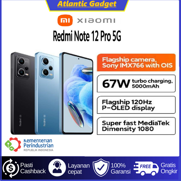 Hp Xiaomi Redmi Note 12 Pro 5G Ram 8/256GB | Mediatek Dimensity 1080 | 6.67" Amoled | 50MP Camera | Garansi Resmi