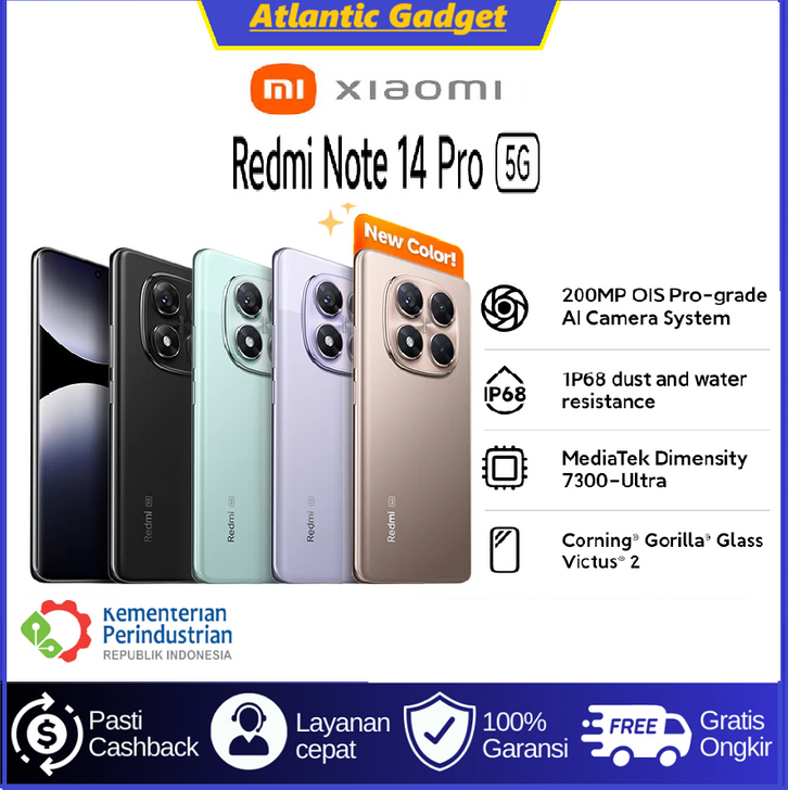 Hp Xiaomi Redmi Note 14 Pro 5G [8/256GB] [12/512GB] | MediaTek Dimensity 7300 Ultra | 200MP OIS ProGrade AI Kamera | NFC
