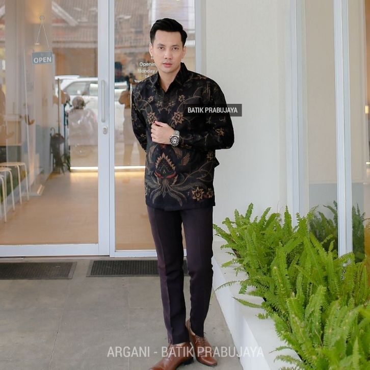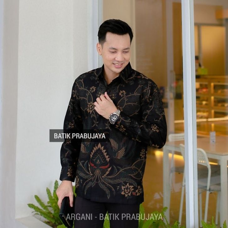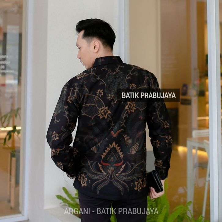 ARGANI Kemeja Batik Pria Modern Premium Lengan Panjang Terbaru Baju Hem Batik Pria Hitam Tangan Panjang Cowok Kondangan
