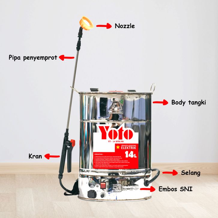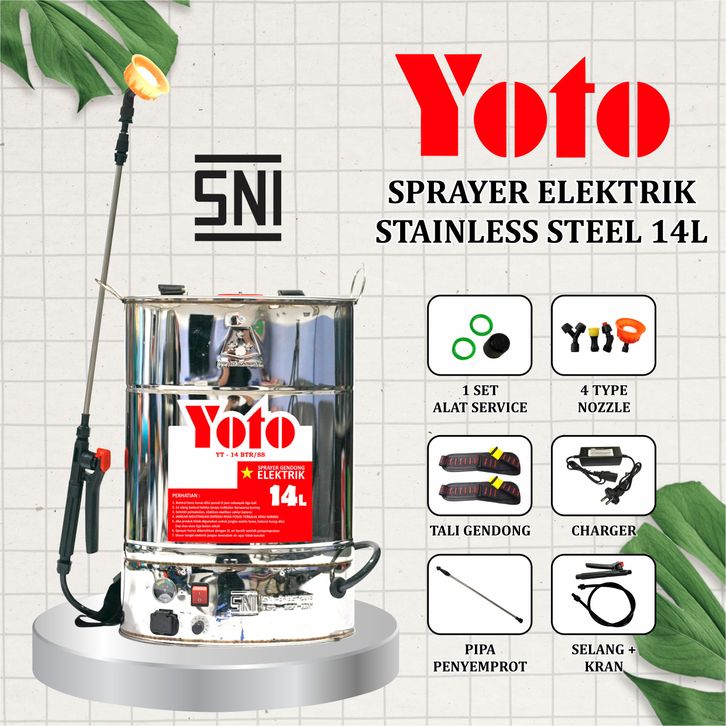 Sprayer YOTO 14 Liter Baterai Stainless Steel (YT-14BTR/SS) - Sprayer Elektrik