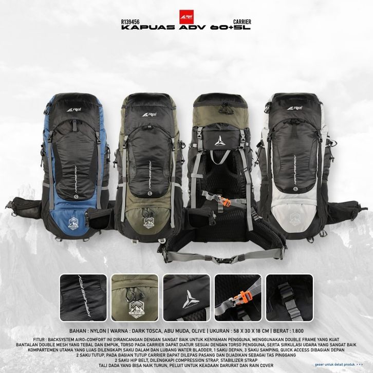 [Mall] TAS GUNUNG Tas Carrier AREI Kapuas Adv 60+5 Liter Arei Outdoorgear