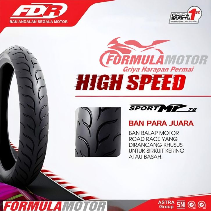 90/80-14 + 100/80-14 FDR Sport MP76 MP-76 Ring 14 Tubeless (Racing Wet Grip Profil Donat) Sepasang Ban Motor Matic Untuk