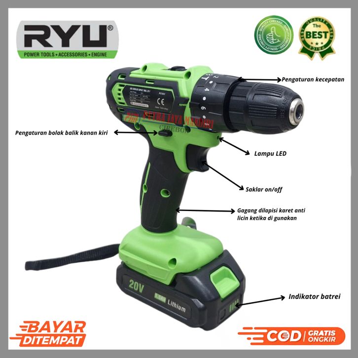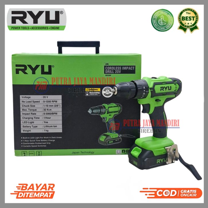 MESIN BOR BATERAI / RYU BOR BATREI BETON TEMBOK KAYU BESI 20 V SET CORDLESS IMPACT DRILL RCI 20 VOLT 100% ORIGINAL