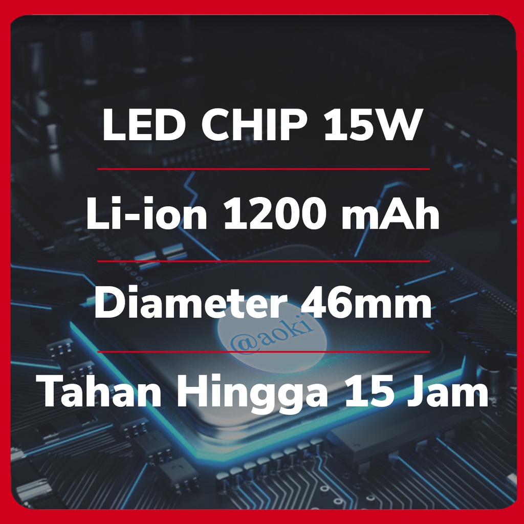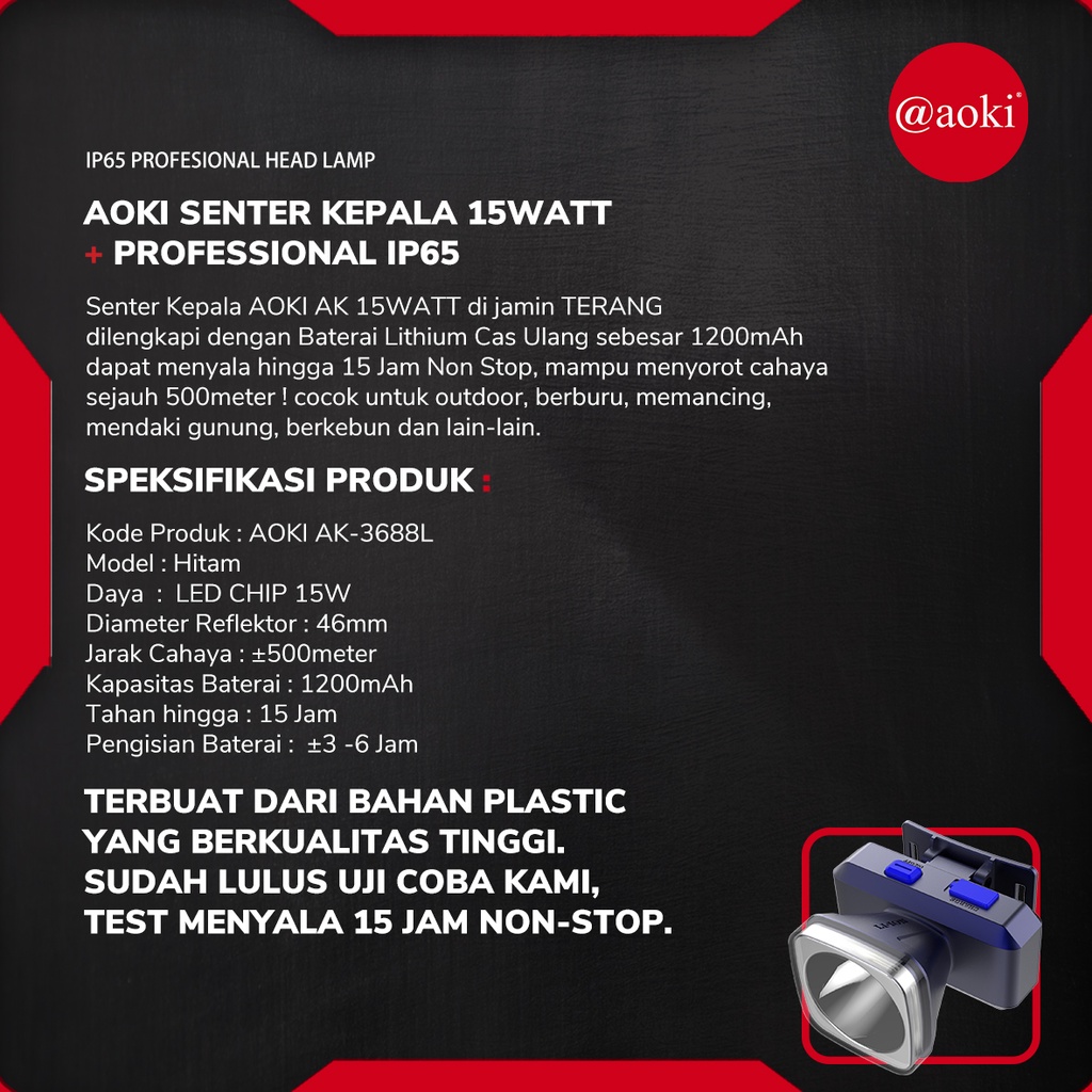 PROMO AOKI SENTER KEPALA 15W BATERAI LITHIUM TAHAN HINGGA 15JAM MOTIF KOTAK DAN BULET