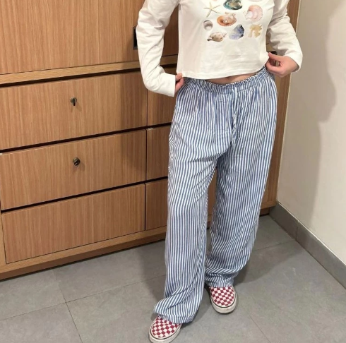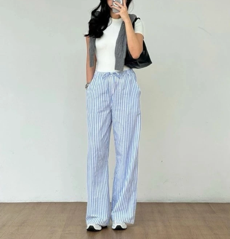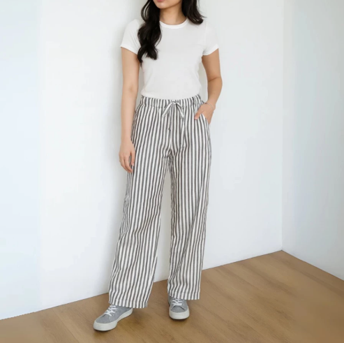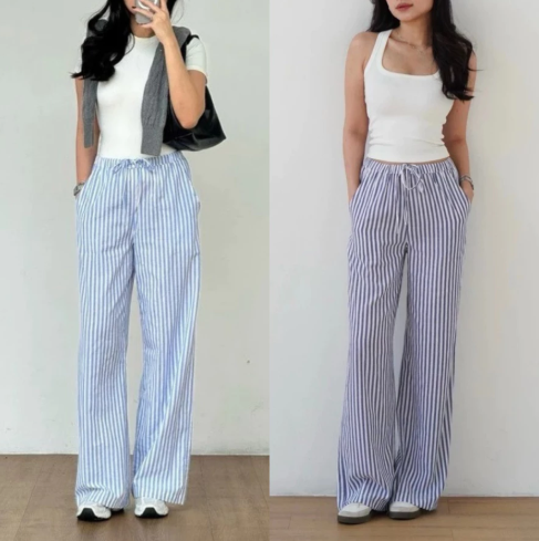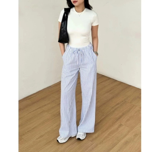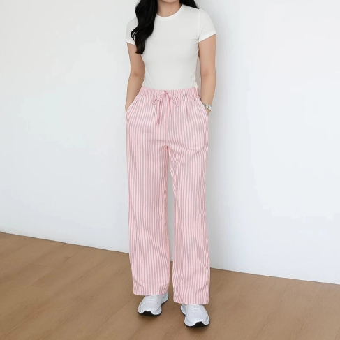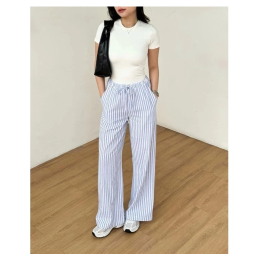 Stripe Pants - Celana Panjang Wanita Baggy Kantor Kuliah Motif Garis Kulot stripe