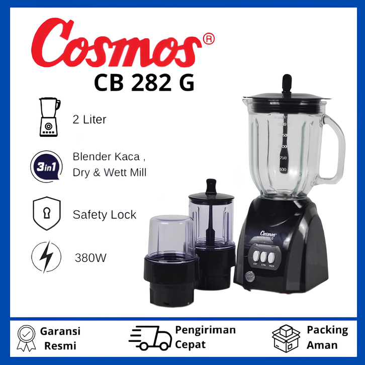 Blender Cosmos CB 282 G Jumbo Kapasitas 2L Blender Cosmos Plastik / Kaca 3IN1 Best Seller
