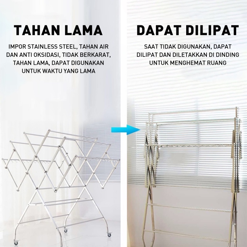 HRAK JEMURAN BAJU STAINLESS STEEL /JEMURAN BAJU PAKAIAN 120CM /KUAT /KOKOH /MURAH