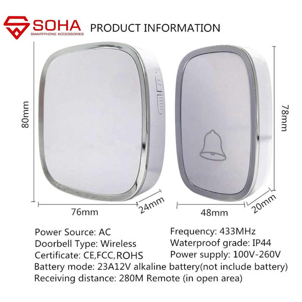 BEL-002 WIRELESS DOORBELL WATERPROOF DOOR BELL HOUSE LED LIGHT 36 NADA