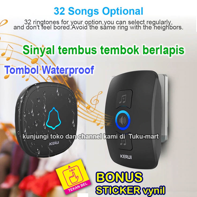 BEL BELL RUMAH PINTU KANTOR WIRELESS TANPA KABEL DOOR KERUI M525