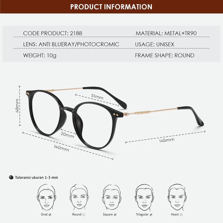 Kacamata Minus Photocromic Anti Radiasi Blueray Wanita Pria Cowok Potocromic Fotocromi Bluecromic 2 in 1 Silau Bulat