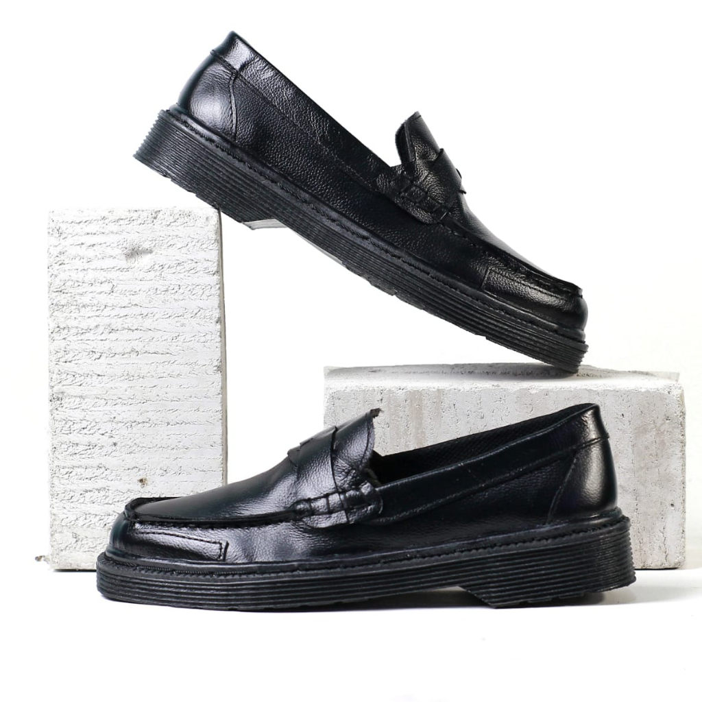 WARKA MCALE SEPATU LOAFERS FORMAL PANTOFEL KERJA PRIA KULIT ASLI PREMIUM SLIP ON HITAM SIZE 38 44