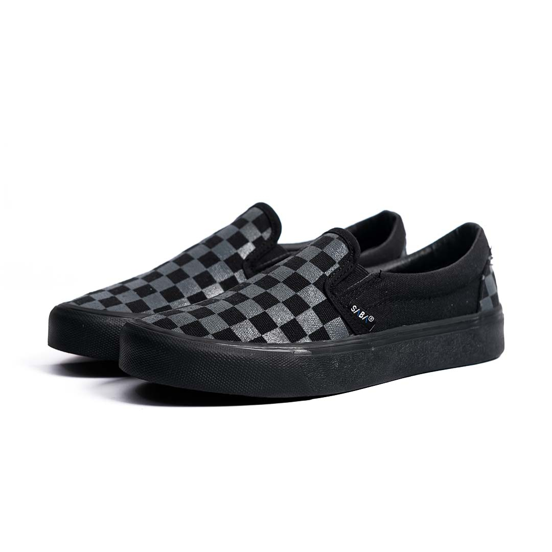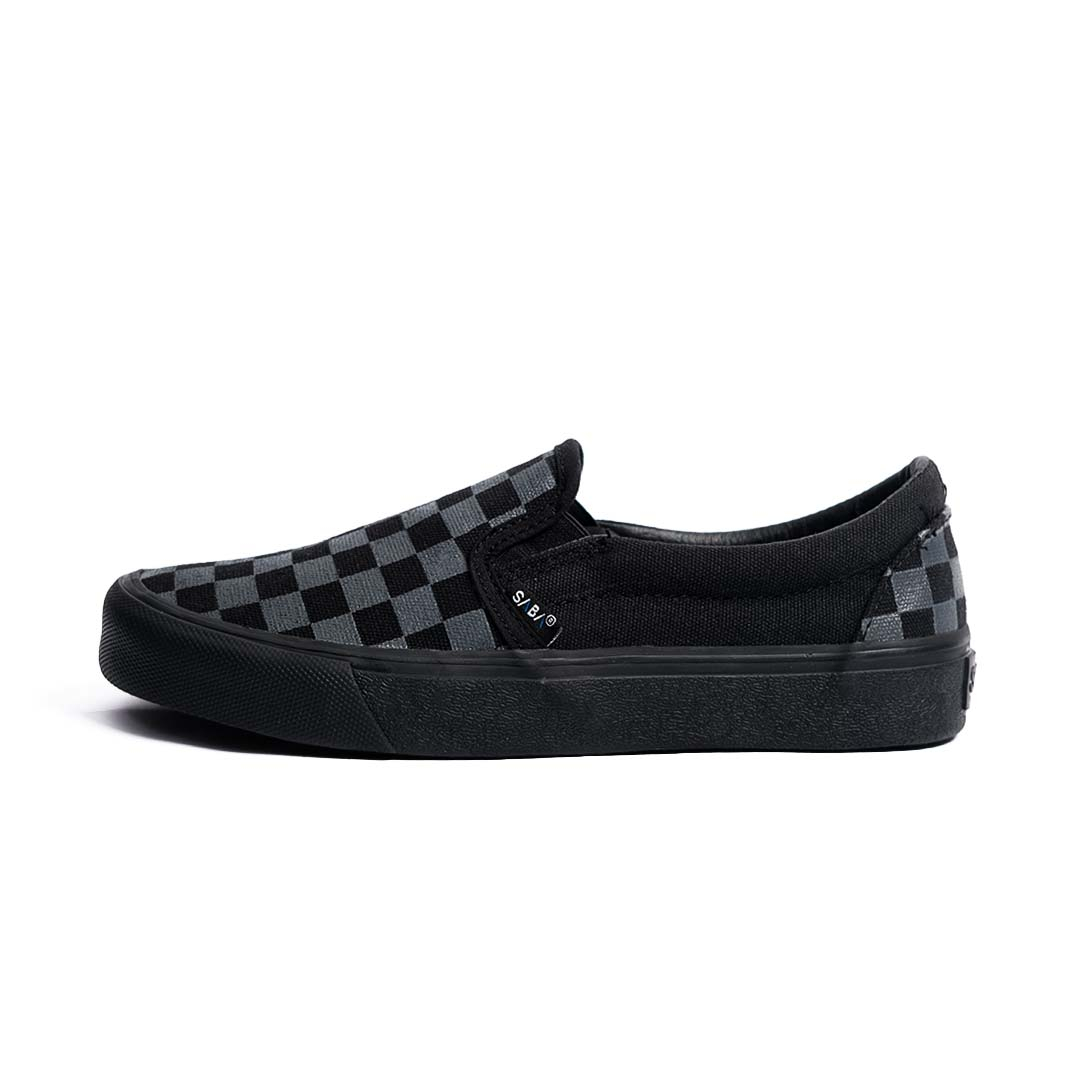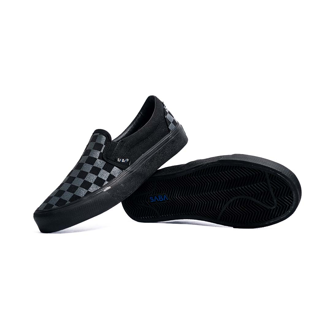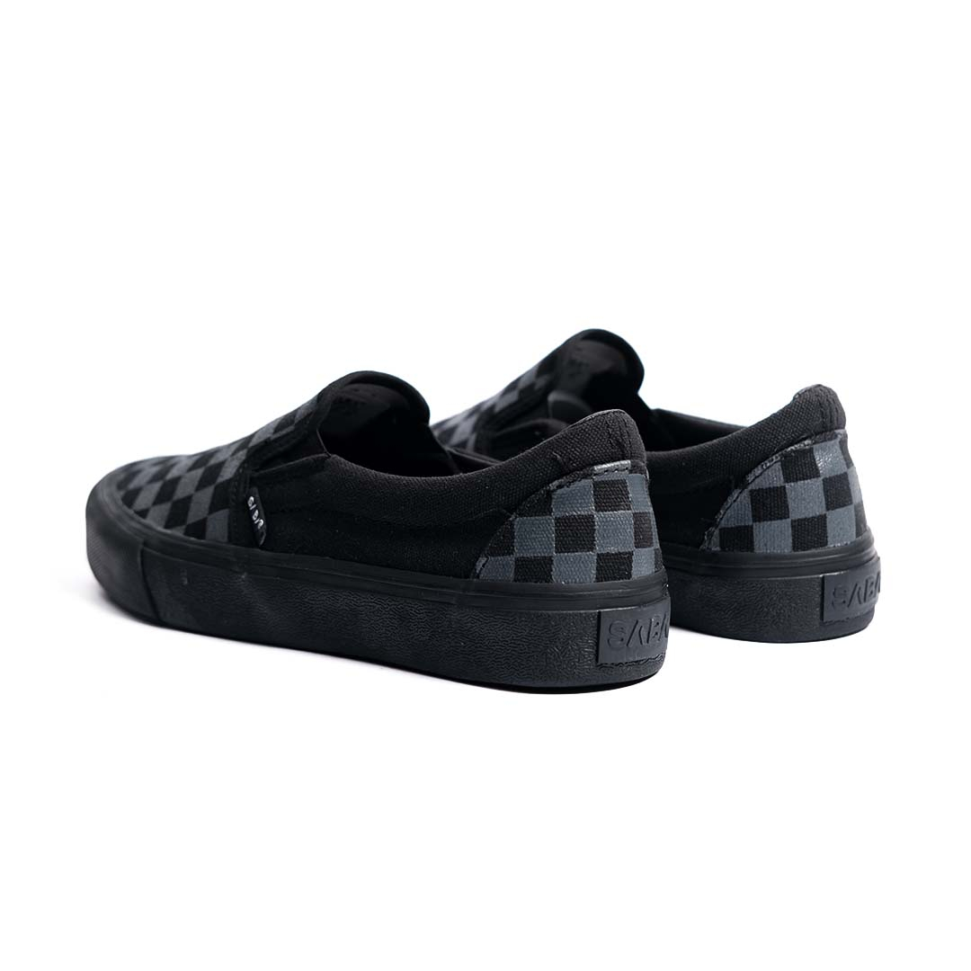 SABA CHECKERBOARD SLIP ON ALL BLACK - SEPATU SNEAKERS CASUAL PRIA WANITA