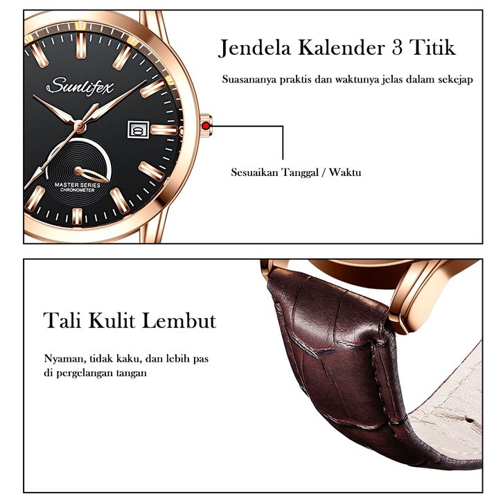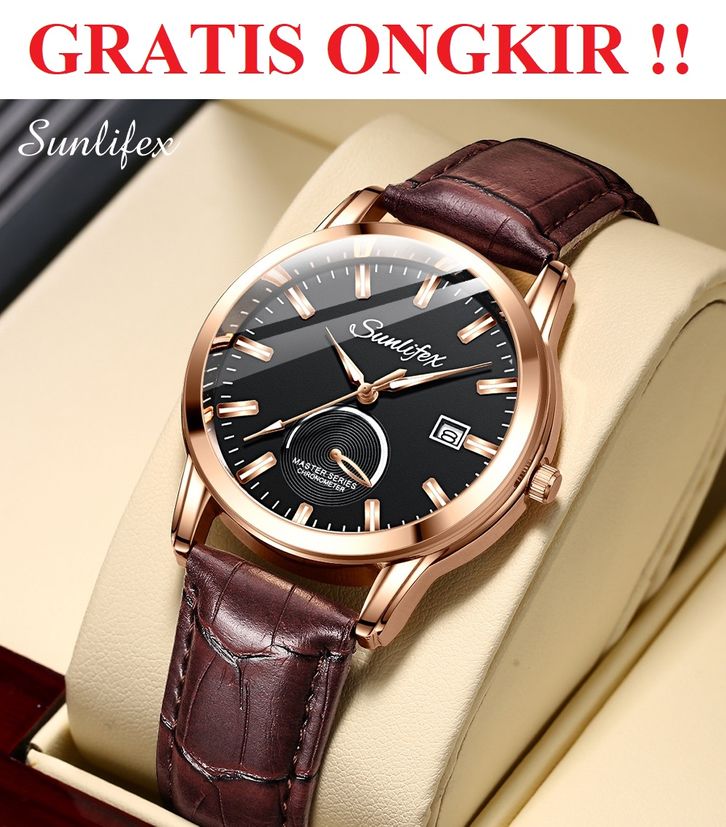 Jam Tangan Pria Original Kuarsa Klasik Santai Jam Pria Calendar Tali Kulit Jam Tangan Cowok