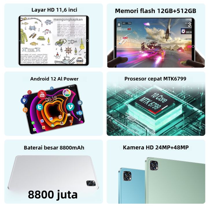 Tablet PC Asli Baru XiaoMi Pro11 12GB + 512GB Tablet Android 11.6 inch Layar Full Screen Layar Besar Wifi 5G Dual SIM