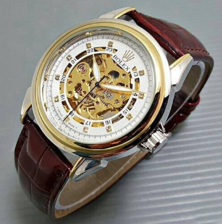 Jam Tangan Rolex | Skeleton | Kulit | Classic Otomatis tanpa baterai | Pria original murah laki laki wanita rolex