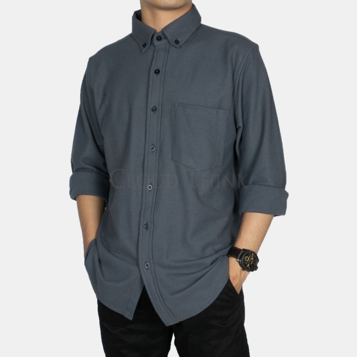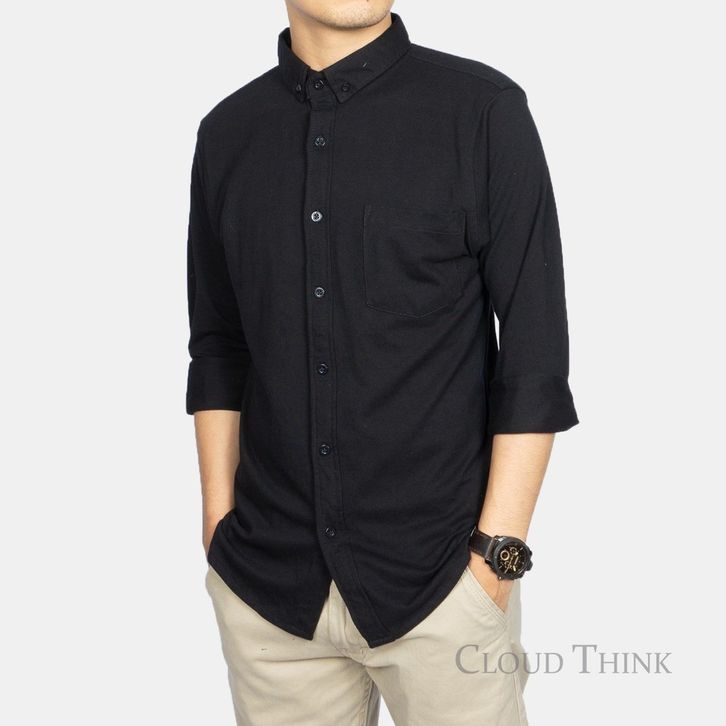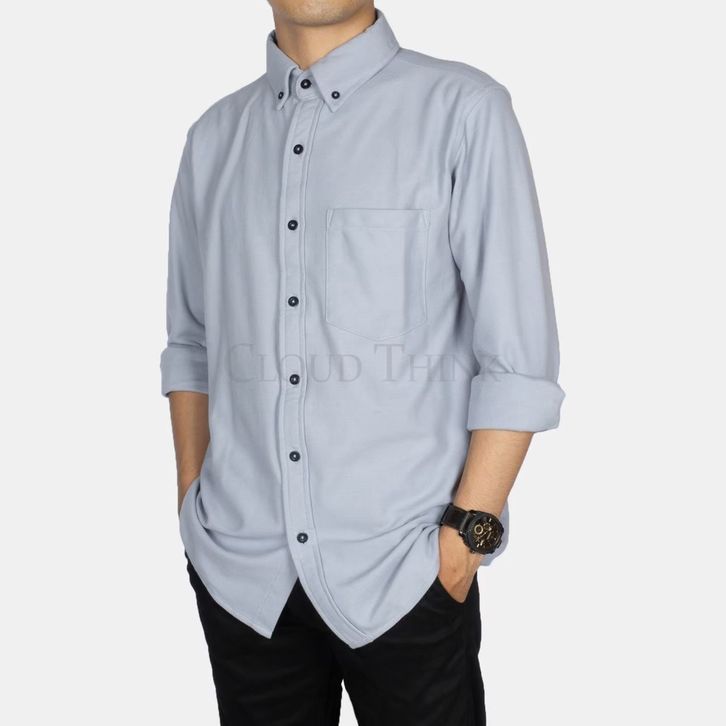 Kemeja Pria Lengan Panjang Original Brand Cloud Think Bahan Cotton Pique