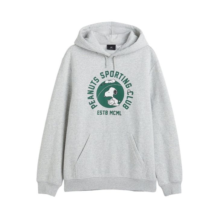 Hoodie Unisex Sablon Peanuts Sporting Club Grey Abu, Flecee Katun Lembut Tebal, Free Papperbag