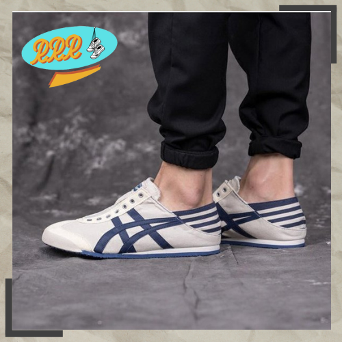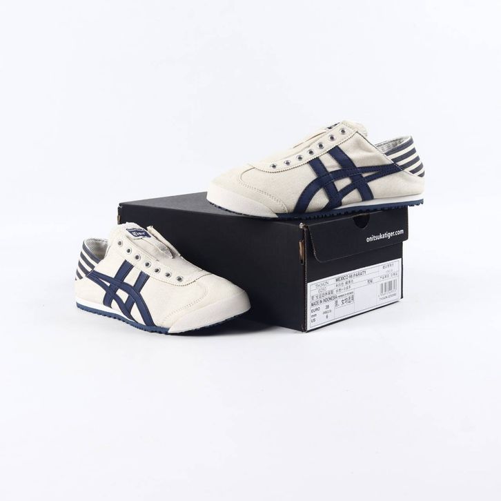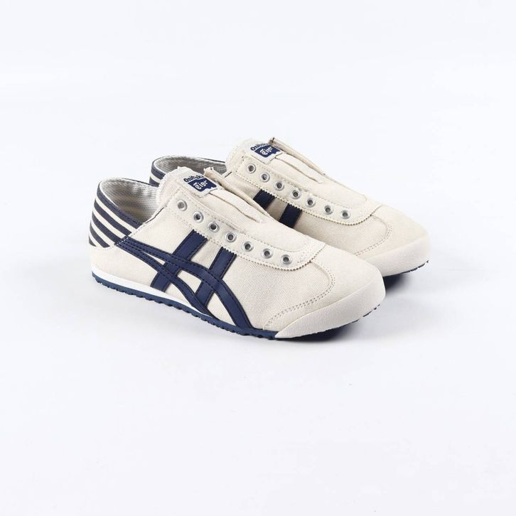 (Gratis Ongkir) Sepatu Pria/Wanita Onitsuka Tiger Slip On Mexico 66 Paraty Natural Navy ORIGINAL PREMIUM