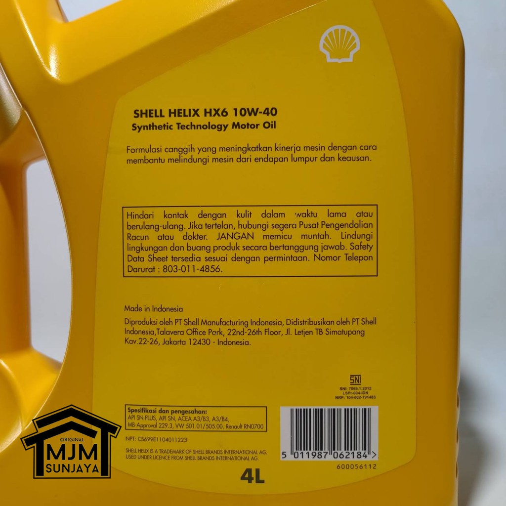 OLI SHELL HELIX HX6 SAE 10W40 4L GALON FULL SYNTHETIC KUNING ORIGINAL