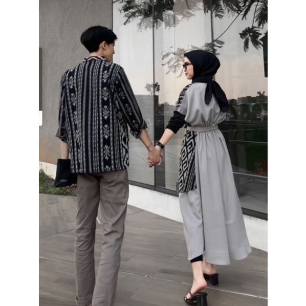 BAJU TENUN COUPLE PASANGAN DRESS NAOMY AYRA IVORY AURORA SET COUPLE KONDANGAN MODERN