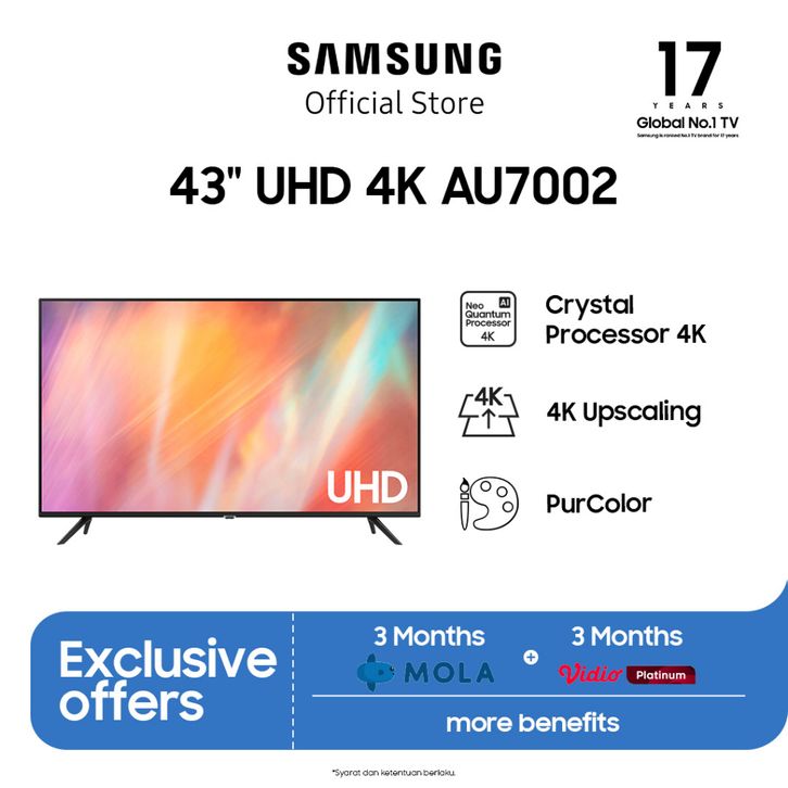 [PROMO SPECIAL] SAMSUNG SMART TV 43 INCH UHD 4K AU7002 DENGAN PURCOLOR TV ANDROID KUALITAS TERBAIK UA43AU7002KXXD EROT03